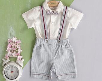 Baby Boys 1st Birthday Cake Smash Outfit Bowtie Romper Suspenders Shorts Pants Formal Suit Clothes for Photo Shoot Party. FREE Delivery by Amazon.